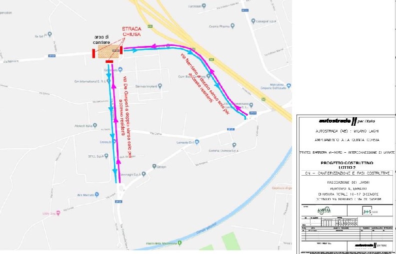 Aggiornamento: per consentire l’ultimazione degli interventi relativi alla nuova rotatoria a servizio del sottopasso, si rende necessaria la chiusura della sede stradale intersezione via Nerviano/De Gasperi.