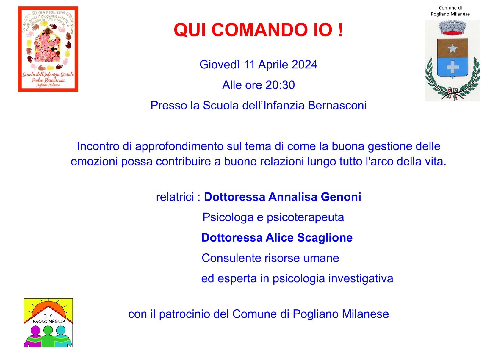 Giovedì 11 Aprile 2024 alle ore 20:30 presso la Scuola dell’Infanzia Bernasconi
