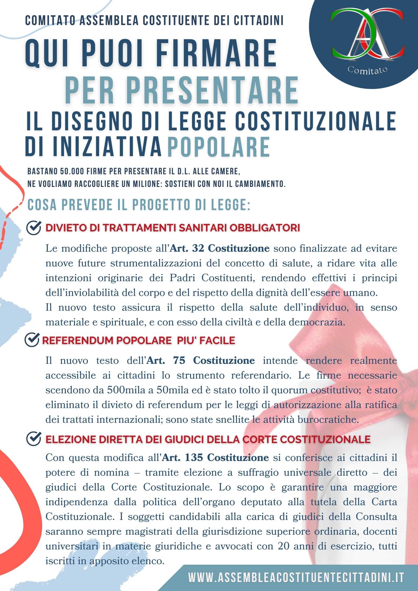 • MODIFICHE DEGLI ARTICOLI 32 – 75 e 135 DELLA COSTITUZIONE