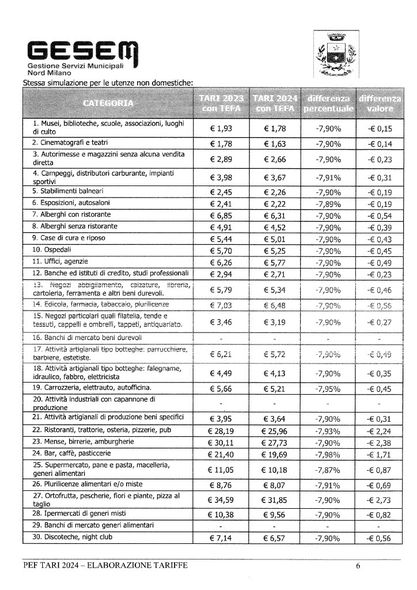 La tariffa TARI di quest’anno è comunque inferiore di circa l’8% in media rispetto alla tariffa TARI 2023 (senza sconto- decreto aiuto covid) come verificabile dal prospetto allegato.
